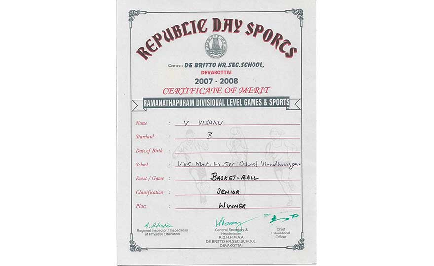 I was part of my school basketball team, coached by Ramanathan. Our team practiced every day after school and had special training during summer camp. We had the opportunity to participate in division and state-level tournaments, which also involved traveling together and enjoying the camaraderie. Being part of the team was a rewarding experience. Basketball, as a group outdoor sport, taught me valuable life lessons about team coordination, fostering a team spirit, and striving for collective success.