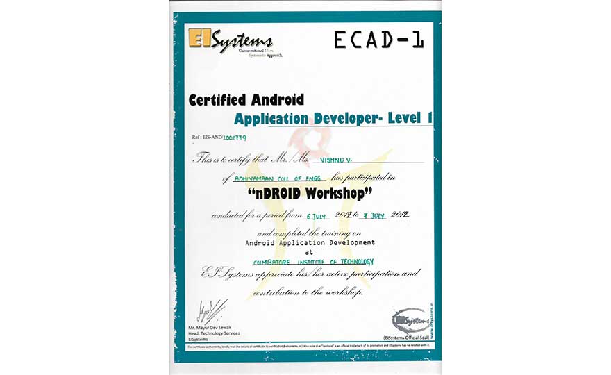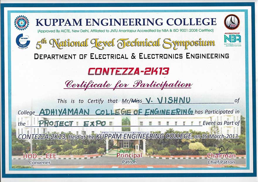 Place: Adhiyamaan college of Engineering, India (2014)